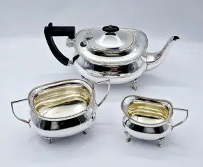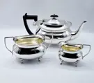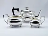 Een verzilverd Victoriaans theeservies met houten handvat en een mooie vergulde binnenkant, gemaakt door Pinder Brothers rond 1900 in Sheffield.