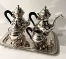Prachtig Engels Koffieservies E.P.N.S Alpaca Ca 1950 (5 Stuks) Regence stijl