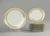 Het servies verkeert in goede staat. Geen chips en geen haarlijnen. De goudkleurige accenten zien er nog mooi uit.