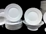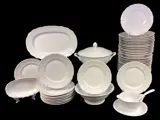 Uitzonderlijk dinerservies voor 12 personen van het beroemde merk Richard Ginori. Gemaakt van puur wit porselein. De vorm, "antico Doccia" genaamd, wordt gekenmerkt door een gebogen lijn in reliëf en een profiel geïnspireerd op laat-barok Florentijns zilverwerk. Het servies dateert uit 1947.