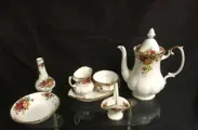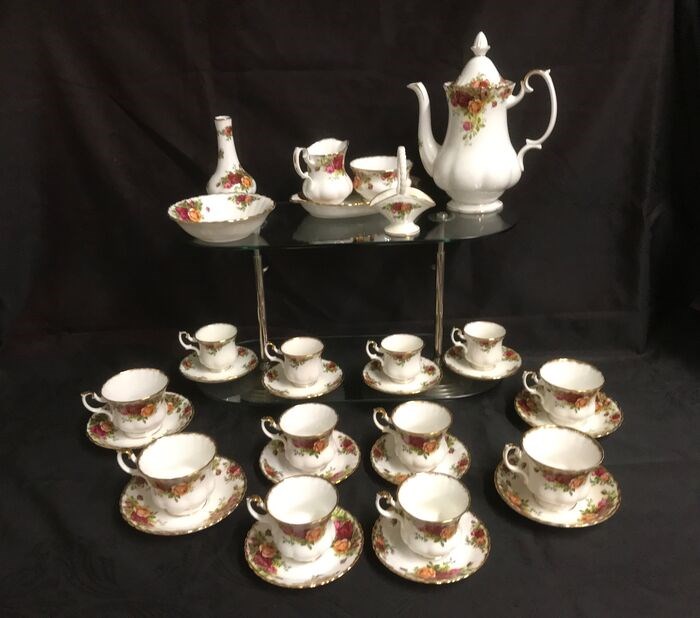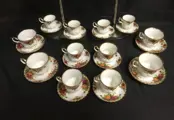 4 koffiekopjes hoog 7 cm schotels doorsnede 14 cm.