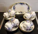 7 Moonlight Rose koffiekop en schotels + serveerschaaltje en extra schoteltje van het bekende Engelse merk Royal Albert Ltd.