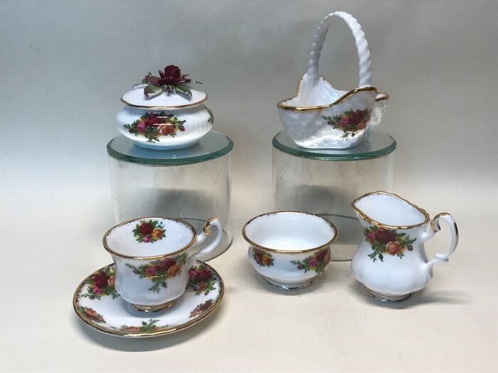 5 stuks serviesgoed in miniatuur Old country Roses.