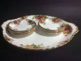 Royal Albert : Serveerschotel & 6 petit four "Old Country Rose "