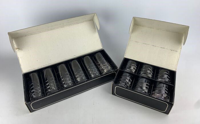 Originele set van 12, 6 van elk type glazen geproduceerd door Royal Crystal Rock uit de jaren 70 in Italië