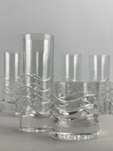 Cilindrische kristalstructuur met decoratieve golven over het hele lichaam. Perfecte vormen voor water en dranken.