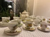 Mooie romantische Engelse koffie en theeset voor het voorjaar en Pasen, in romantische gele tinten!