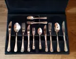 Het kavel bestaat uit 36 bestek en de fluwelen koffer, de rest die op de foto's staat is alleen ter decoratie.