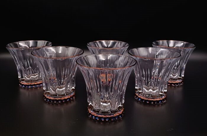 Set van 6 zware en grote kristallen whiskyglazen, gegraveerd, mondgeblazen Vintage van SAME Cristallerie (SC Line) Crystal. Allemaal handgemaakt na een lang proces, gesneden. Dit artikel is gedecoreerd door meester-ambachtslieden volgens de Murano-school. De kleine gebreken die u kunt vinden, garanderen dat het product volledig handgemaakt is en waarde heeft als een kunstwerk. Elegante en tijdloze vormgeving. SC Lijn circa 1970.