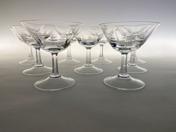 9 mooie vintage coupesmet geslepen voet en motief .