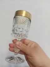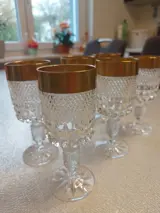 Zes prachtige kristallen bokaalglazen, met gouden rand. Heel leuk patroon. Transparant.