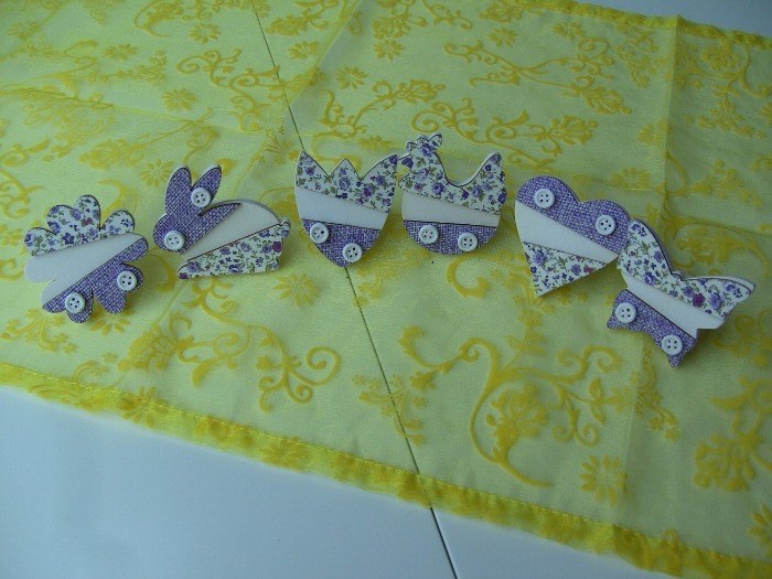 SERVETRINGEN LILA ECRU MET KNOOPJES 6 DLG NIEUW