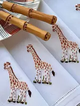 Set van zes servetten, puur linnen, met de hand geborduurd.