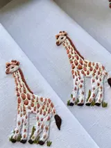 Set van zes lunchservetten, handgeborduurd op puur linnen, handgemaakt. Zelfs de contouren zijn met de hand genaaid.