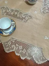 Zie elk detail van deze prachtige handdoek uitgevoerd in gehaakt met zeer goed uitgewerkt geborduurd kant.