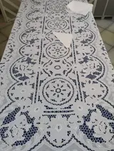 Spectaculair tafelkleed x12 groot formaat 170x375 cm in linnen met diepdruk en volledig met de hand geborduurd>Tafelkleed + 12 servetten