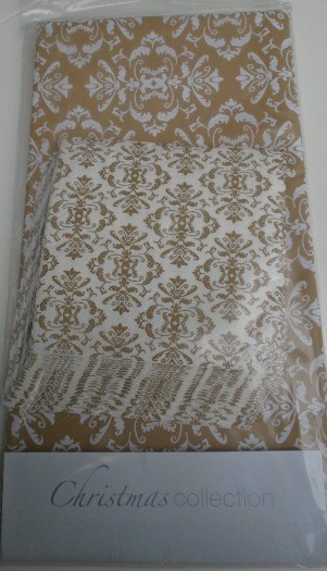 Papieren kleed is in lichtbruin met ecru. En servetten hebben tegenover gestelde kleuren.