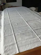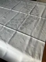 Groot wit katoenen damast tafelkleed met blad decor.