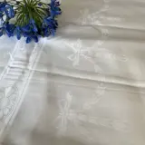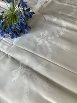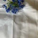 Witlinnen damast stof voor een groot tafelkleed, of twee kleinere tafelkleden. met decor van guirlandes.