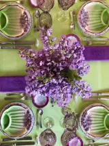 Tafelkleed voor grote tafels, met een elegante pistachegroene kleur, in een katoenen canvasstof, ongemengd, met inslag, met een uitzonderlijke kwaliteit voor tafelkleden die het wassen ondersteunt zonder de kleur te veranderen. Het is een voortreffelijk en elegant tafelkleed, met textuur, combineerbaar met feestelijk serviesgoed en zonder vlekken of beschadigingen.