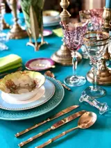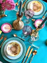 Tafelkleed voor grote tafels, met een elegante turkooisblauwe kleur, in geweven katoenen stof, van uitzonderlijke kwaliteit. Het is een voortreffelijk en elegant tafelkleed, met textuur, te combineren met feestelijk servies en zonder vlekken of beschadigingen.