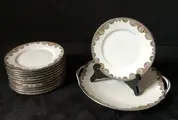 Limoges porseleinen dessertservies uit de TLB fabriek. Touze Lemaitre Blancher stempel corresponderend met de jaren 1918-1942.