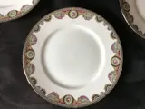 Decor circa 1920-25. Zilveren net en fries van bloemen op de rand van de borden.