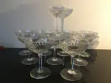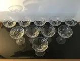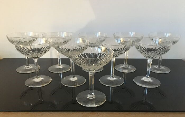 Schitterend servies van 10 grote geslepen kristallen champagneglazen.