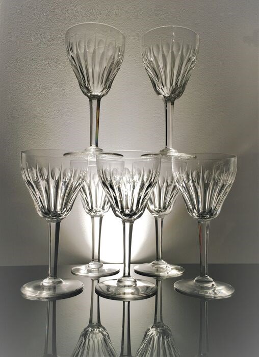 Schitterende set van 7 geslepen kristallen wijnglazen (het kleinste model - er zijn 2 maten wijnglazen).