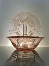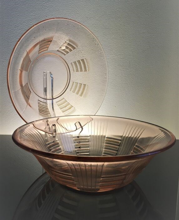 Een heel mooi paar slakommen / kommen in rosalinekleurig gegoten glas.