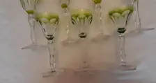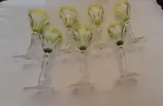6 glazen waarvan 2 met groene bloemkroon, de 4 andere met gele bloemkroon