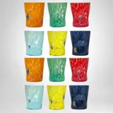 Prachtige set van 12 gekleurde glazen in mondgeblazen glas.