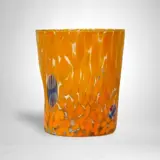 De glazen zijn gemaakt op een transparante glazen voet en zijn gedecoreerd met stukjes gekleurde glaspasta en millefiori murrine.