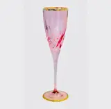 6 glazen ontworpen en geproduceerd voor Vetromania in Italië en met de hand gedecoreerd door de Zecchin-glasfabriek met gekleurd email en 24 kt goud, perfect volgens de oude techniek van Murano-glasdecorateurs.