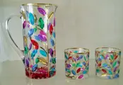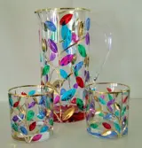 Set bestaat uit een karaf en twee met de hand gedecoreerde glazen met puur goud.