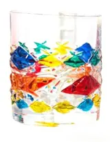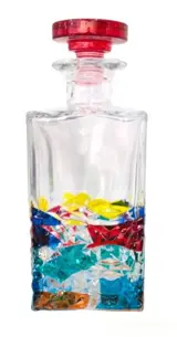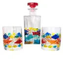 Flessenset en 2 whiskyglazen ontworpen en geproduceerd voor Vetromania in Italië en met de hand gedecoreerd door de Zecchin-glasfabriek met gekleurd email volgens de oude techniek van Murano-decorateurs tot in de perfectie.