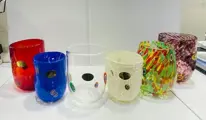 Elk glas verschilt van de andere qua kleur en opstelling van millefiori murrine en hoogtes