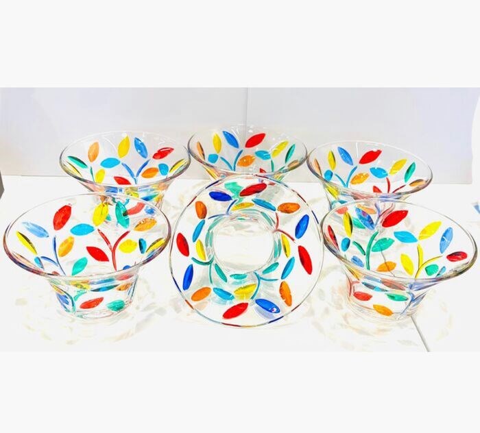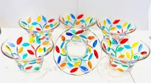 6 ijskommen geproduceerd voor Vetromania in Italië en met de hand gedecoreerd door de Zecchin-glasfabriek met gekleurd email, perfect volgens de oude techniek van Murano-decorateurs.