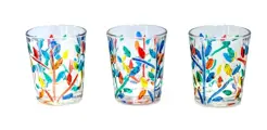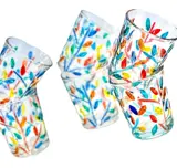 6 borrelglaasjes geproduceerd voor Vetromania in Italië en met de hand gedecoreerd door de Zecchin-glasfabriek met gekleurd email, perfect volgens de oude techniek van de Murano-decorateurs.
