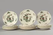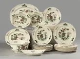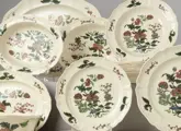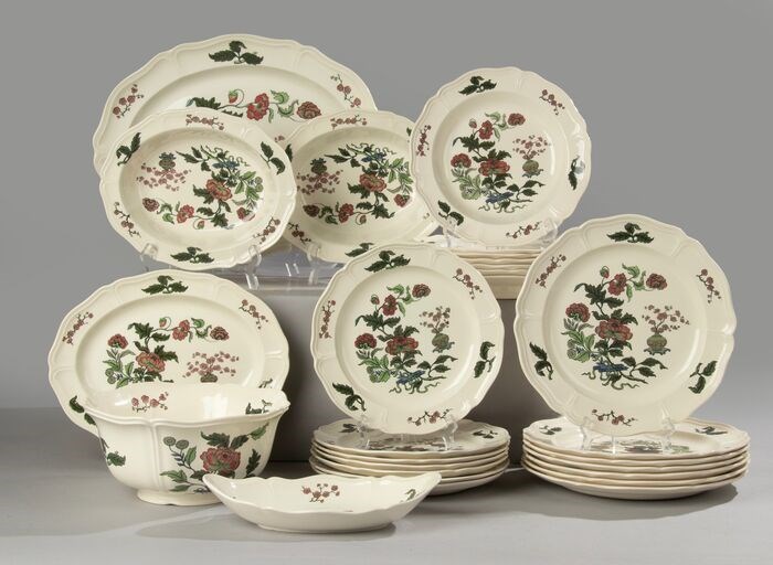 Prachtige set porseleinen tafelservies van het Engelse merk Wedgwood, van de serie Mandarin. De samenstelling van de set is als volgt: