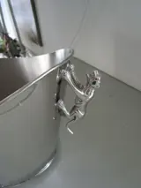 een fraaie en decoratieve wijnkoeler voor ongeveer 10 flessen hij is van een zware kwaliteit in nieuw staat zeer fraai zijn de beide panters , die de koeler een mooi uiterlijk geven
