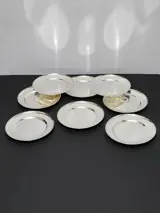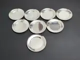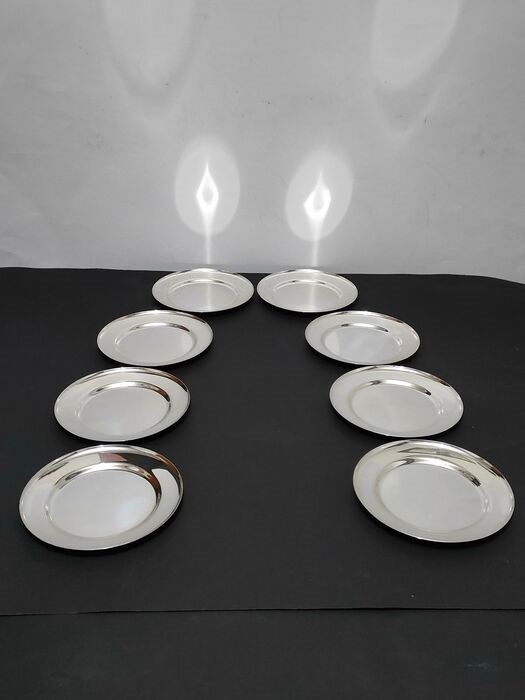 8 prachtige grote onderzetters uit de jaren 70 geproduceerd door WMF in verzilverd staal, in goede algemene staat gehouden met lichte ouderdoms- en gebruikssporen (zie alle foto's).