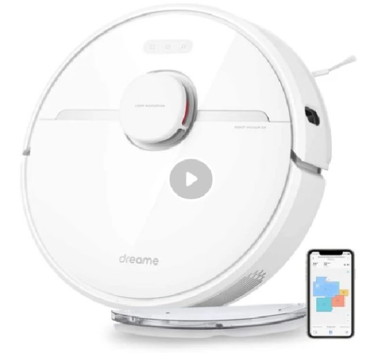 Dreame D9 Smart Robot Vacuum Cleaner Sweep and Mop 2-in-1 3000Pa Strong Suction LDS Laser Navigation 150 Minutes Running Time 270ml Electric Water Tank SLAM Smart Planning APP Control for Pet Hair, Carpet, Hard Floor EU Version - White