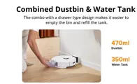 Q8 Max has a 470ml dustbin and a 350ml water tank. The combo with a drawer-type design makes it easier to empty the bin and refill the water tank.