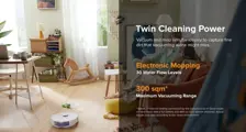 Vacuum and mop simultaneously to capture fine dirt that vacuuming alone might miss. And its maximum vacuuming range can reach 300 sqm.