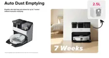 Roborock S7 Max Ultra has a 2.5L dust bag, it allows for up to 7 weeks without manually emptying. (Actual emptying interval will depend on user habits and environmental factors.)