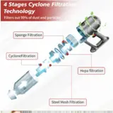 25 Kpa Ultra Strong Suction, Cyclone & HEPA
