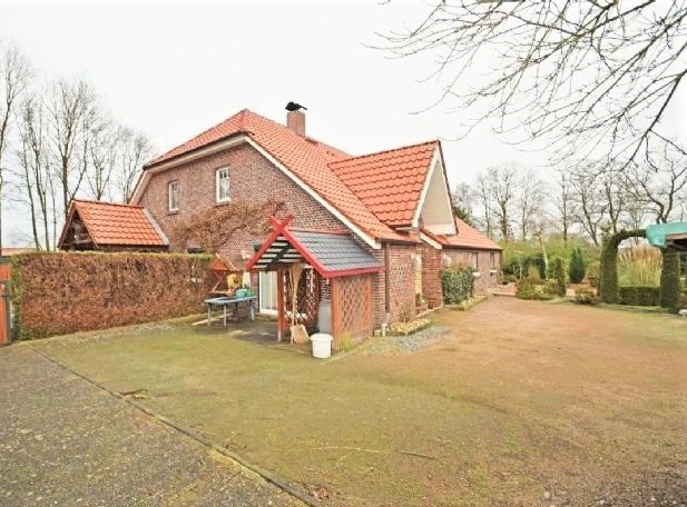 Op een rustige locatie in plattelandssfeer- met weinig naaste buren rondom- en grenzend aan landerijen en vrije natuur, bevindt zich dit in stijl gerenoveerd landhuis in een buitenkern van Wittmund. Perceelsoppervlakte maar liefst bijna 5000 m2 (ca. 4791 m2), waarbij het perceel zich kenmerkt door een besloten karakter vanwege bosomranding, waardoor optimale privacy. Oorspronkelijk bouwjaar omstreeks 1954, rond het jaar 2000 grondig in landhuisstijl gerenoveerd, waarna eveneens regelmatig aan de tijd werd aangepast. Het rioolsysteem is aangesloten op een z.g. Kläranlage, welke door het bevoegd gezag wordt gecontroleerd. Tot het geheel behoren eveneens een garage, een carport en een tuinhuis. Naast volop mogelijkheden voor werken aan huis of een eenvoudige aanpassing voor nog een tweede wooneenheid, biedt dit fraai woonobject- naast riant wonen- ook optimale mogelijkheden voor hobby en vrije tijd w.o. het houden van (huis) dieren.
