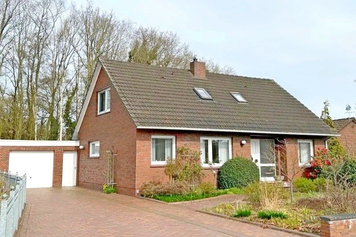 Rustig gelegen -binnen de bebouwde zone-aan een doodlopende weg en tevens op korte afstand van de dagelijkse voorzieningen- bevindt zich deze g.o.h. vrijstaande woning met garage in een buitenkern van het gemoedelijke plattelandsdorp Rhauderfehn, welke is gelegen, te midden van een attractief coulissenlandschap op de grens van het zuidelijke Ostfriesland en het eveneens bosrijke Emsland .Kavelgrootte bijna 800 m2 (ca.. 800 m2). Bouwjaar rond 1978, waarna in de loop der jaren goed onderhouden. Het woongedeelte is voorzien van kunststofkozijnen en grotendeels rolluiken. Binnendeuren in lichte kleurstelling. De indeling op de begane grond maak tevens gelijkvloers wonen mogelijk. In de verzorgde siertuin werd recentelijk in 2022 nog een houten tuinhuis geplaatst. Ruime garage met tevens nog bergruimte.