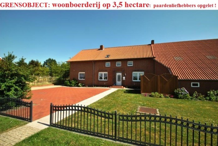 Referentienr. IM-1808002. GRENSOBJECT. Paardenhouders, dierenliefhebbers opgelet !! Goed onderhouden woonboerderij met landerijen en schuur-/ stalruimte. Ook gelijkvloers wonen en event. dubbele bewoning mogelijk. Nabij dorpsrand en op ca. 5 minuten rijafstand van de Nederlandse grens.